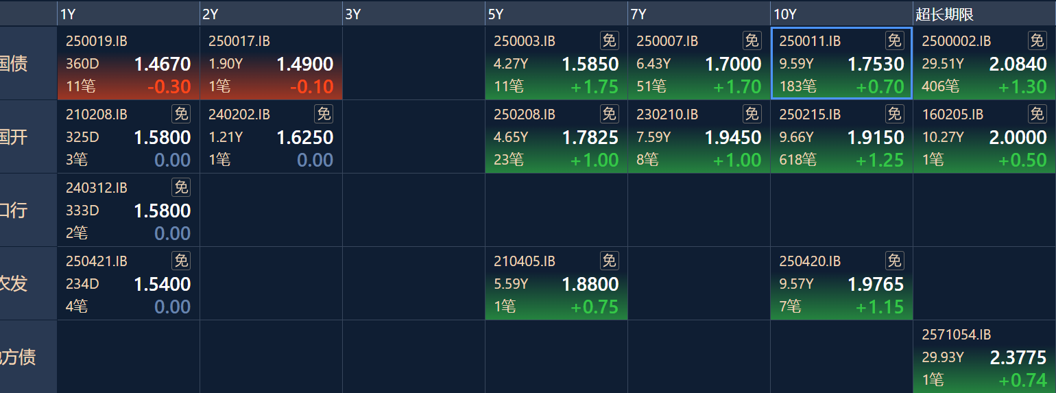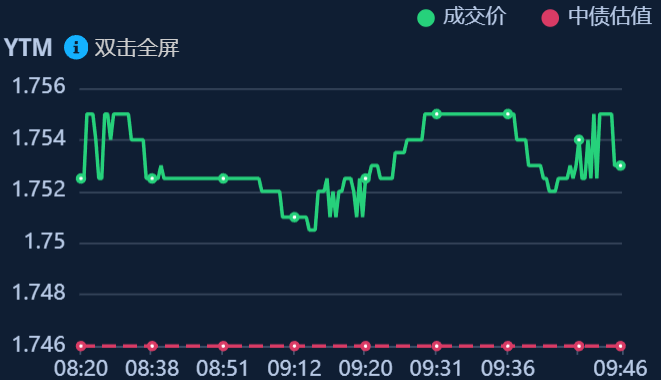 二、十年期国债收益率:1.754 0.008%(国债收益率越涨,债市越跌,两者反向关系)