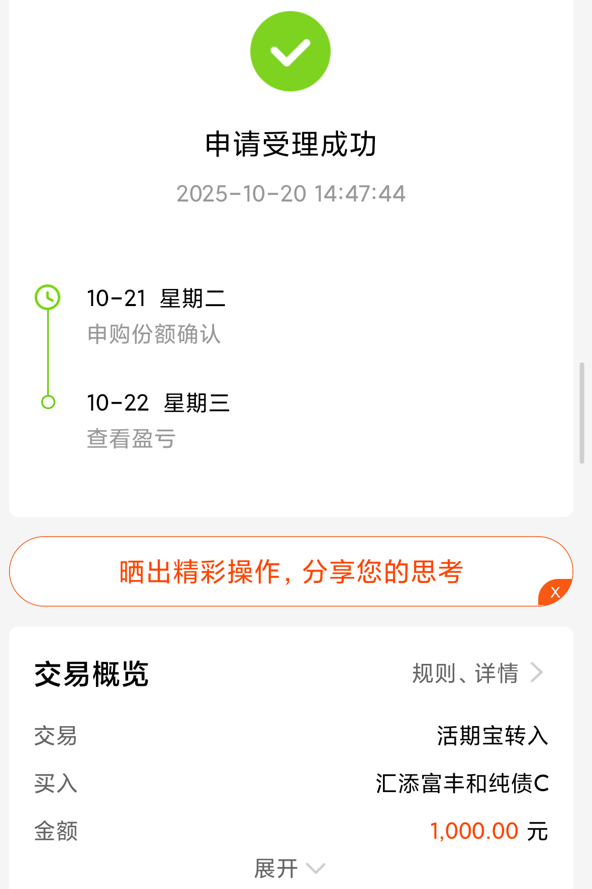 姚姚趁着尾盘权益市场跳水,债市跌幅减小的局面再加仓1000元汇添富丰和纯债C!
