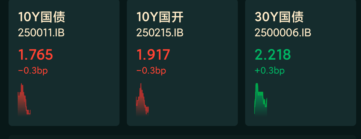 十年期国债收益率:1.765%,-0.3BP(国债收益率越跌,债市越涨)