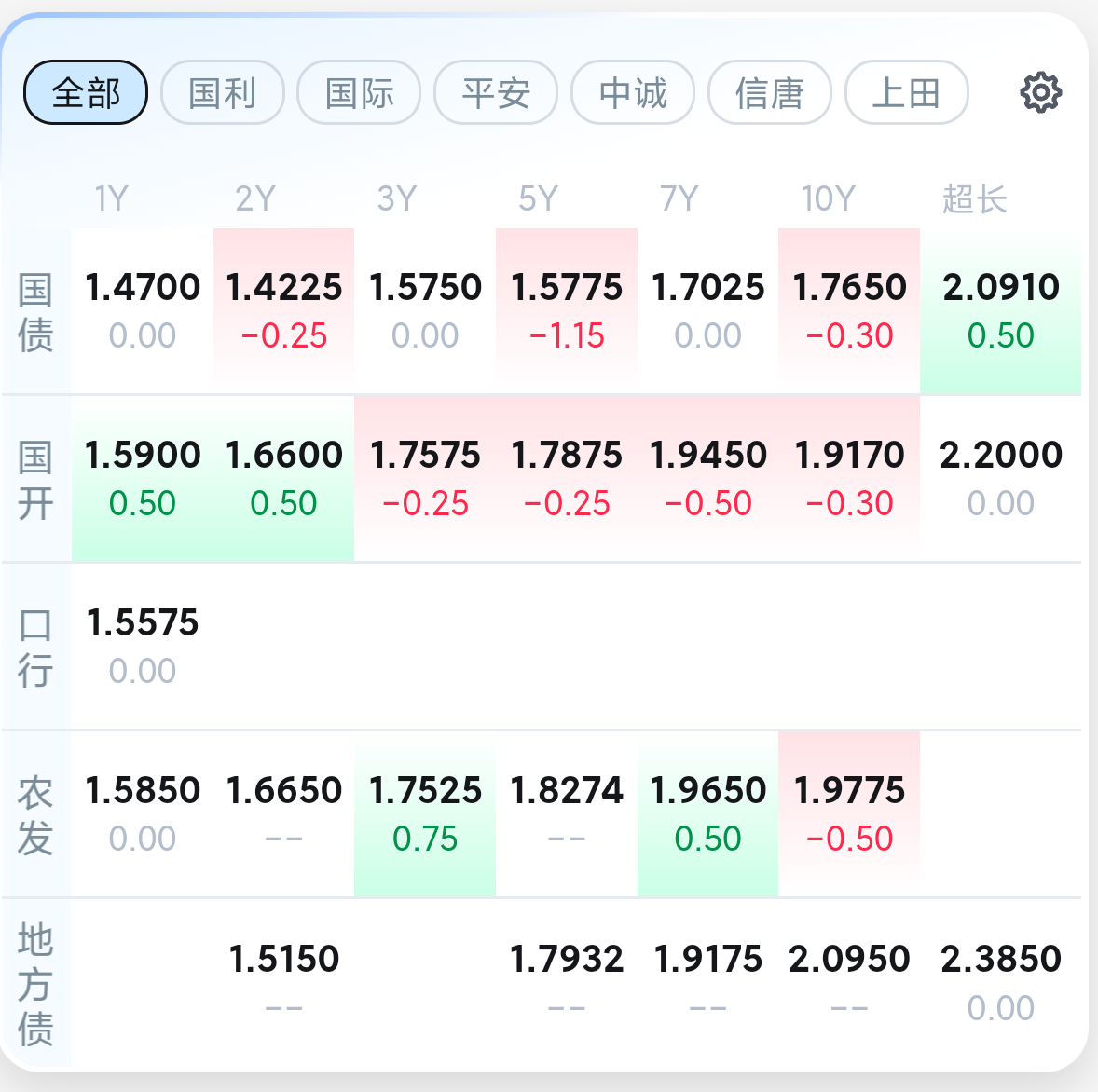三、银行间市场的主要利率债收益率