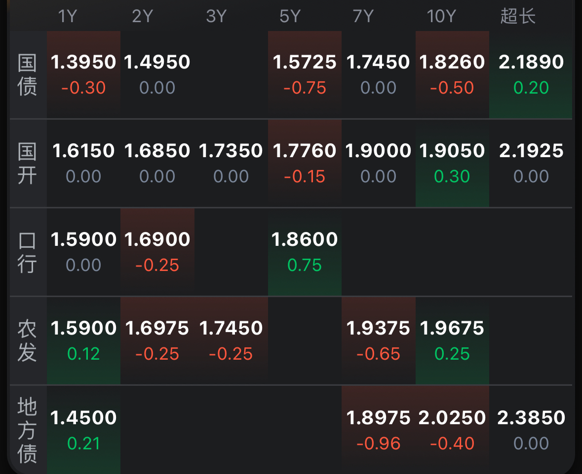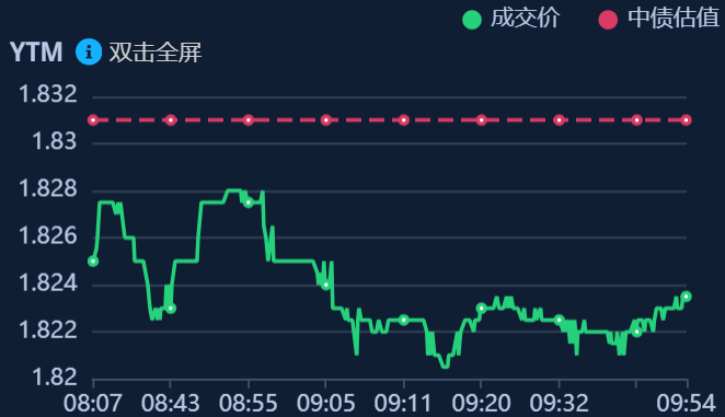 二、十年期国债收益率:1.824 -0.007%(国债收益率越涨,债市越跌,两者反向关系)
