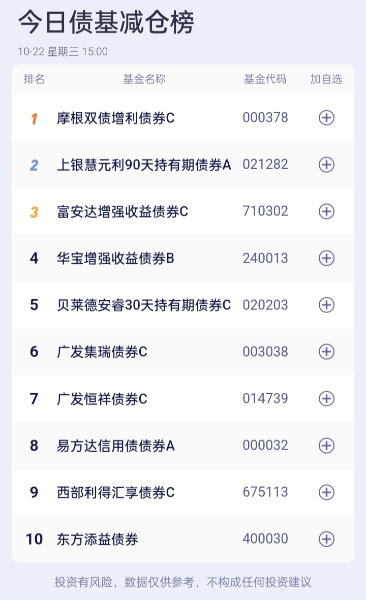 八、债券基金加、减仓榜(截止到15:00收盘)