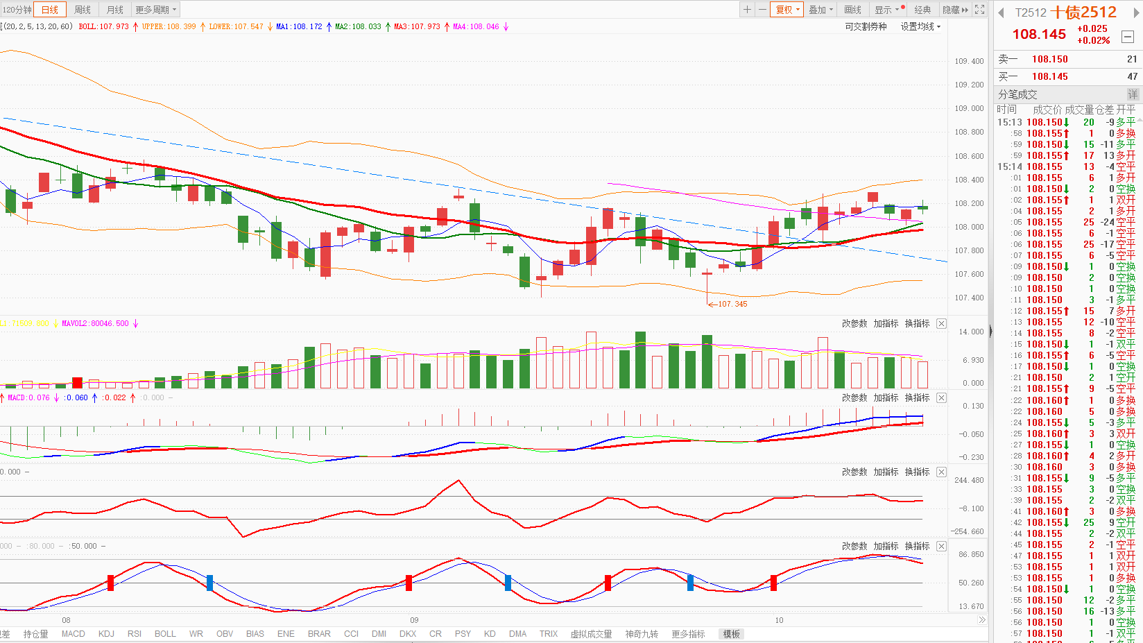 今天10年国债期货高开后冲高回落,总体涨0.02%,日K线在5日均线之下。