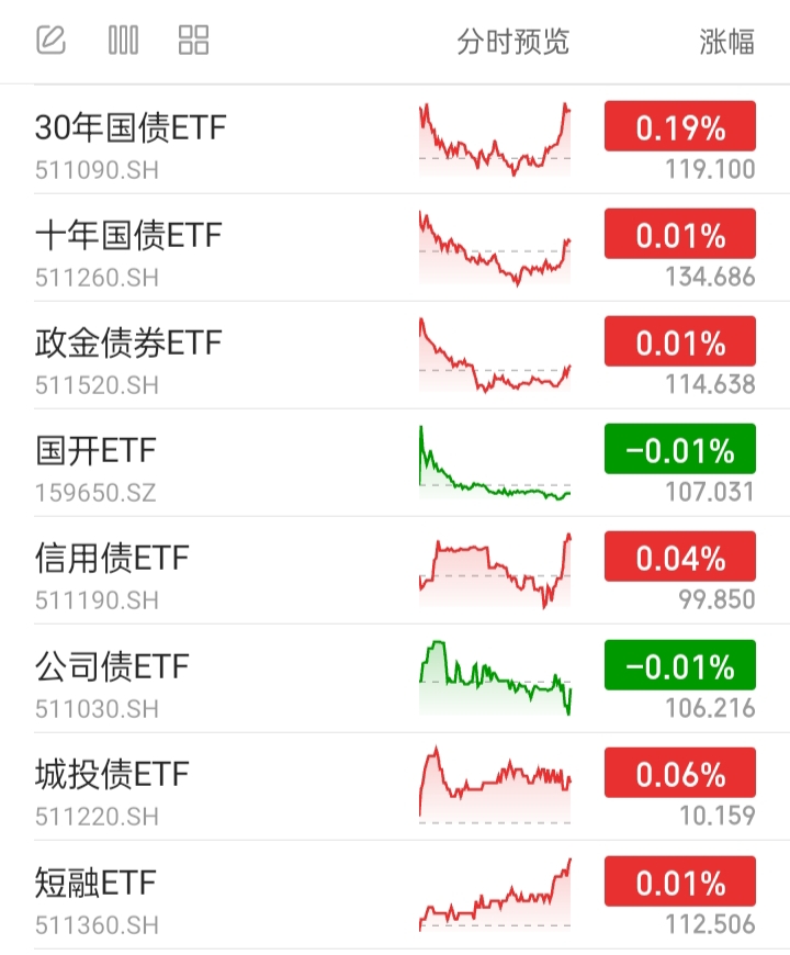 政金债券ETF,代表7-10年中长端政金债基。上涨