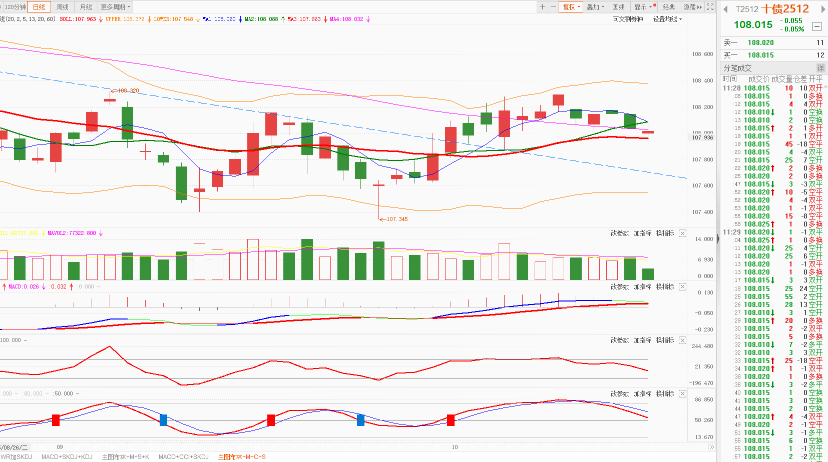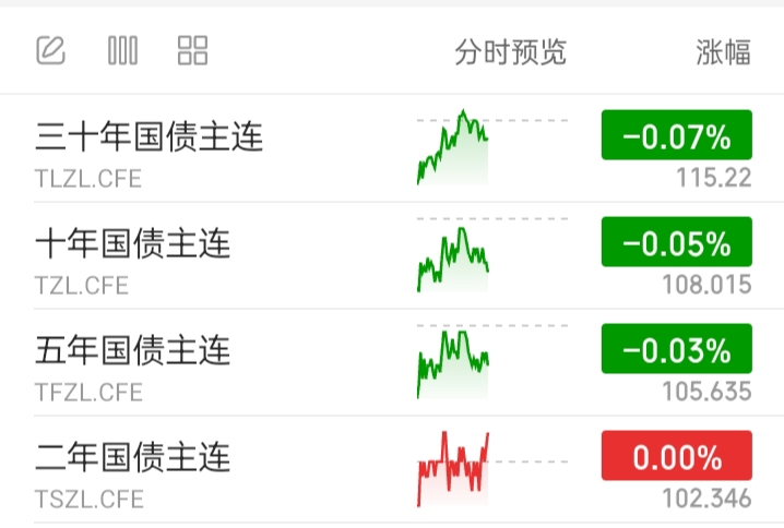 今天10、30年国债期货日K线收盘后在5日均线下,2、5年国债期货日K线收盘后在5、10、20日均线下,整体走势较弱。