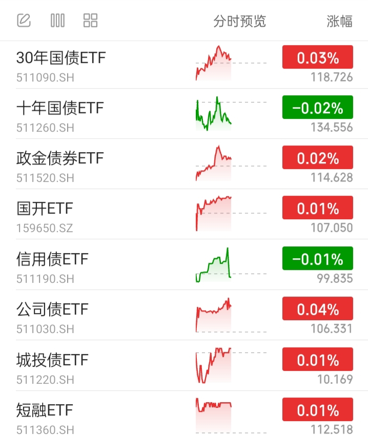 信用债ETF、公司债ETF、城投债ETF,代表信用债基。1跌2涨