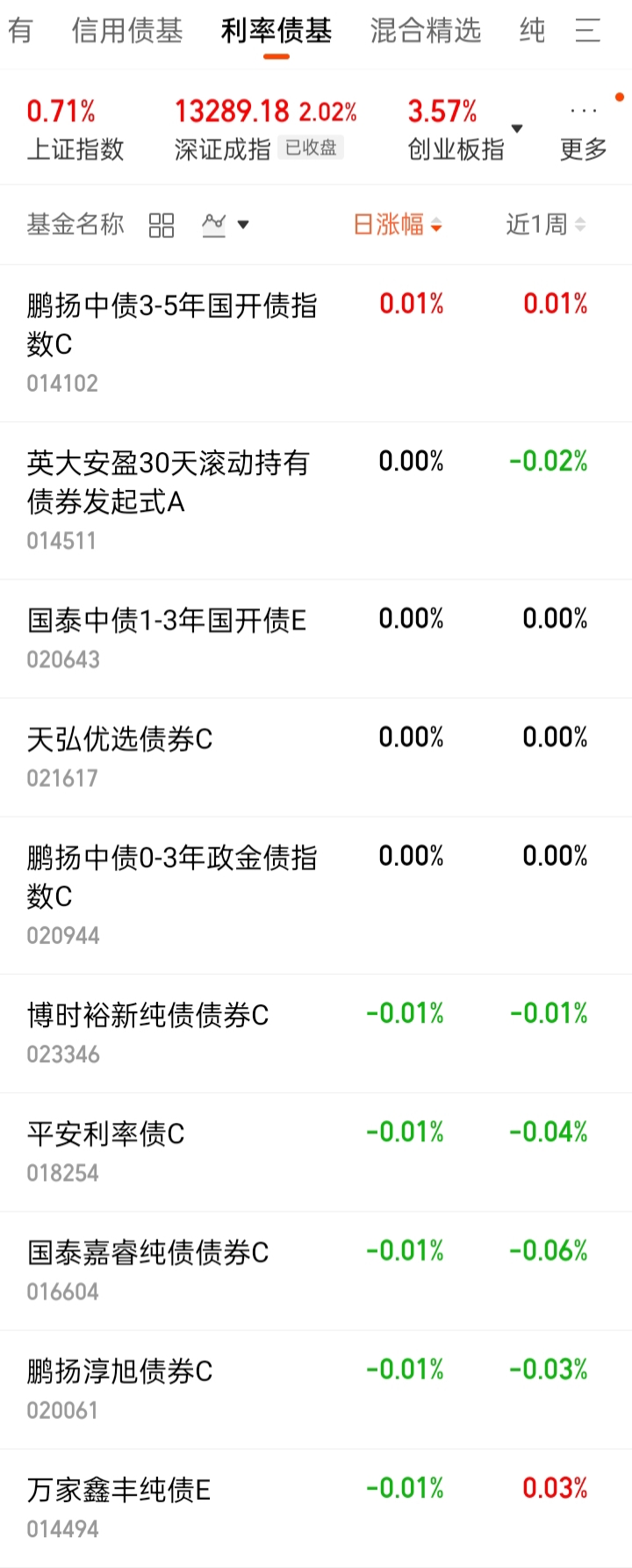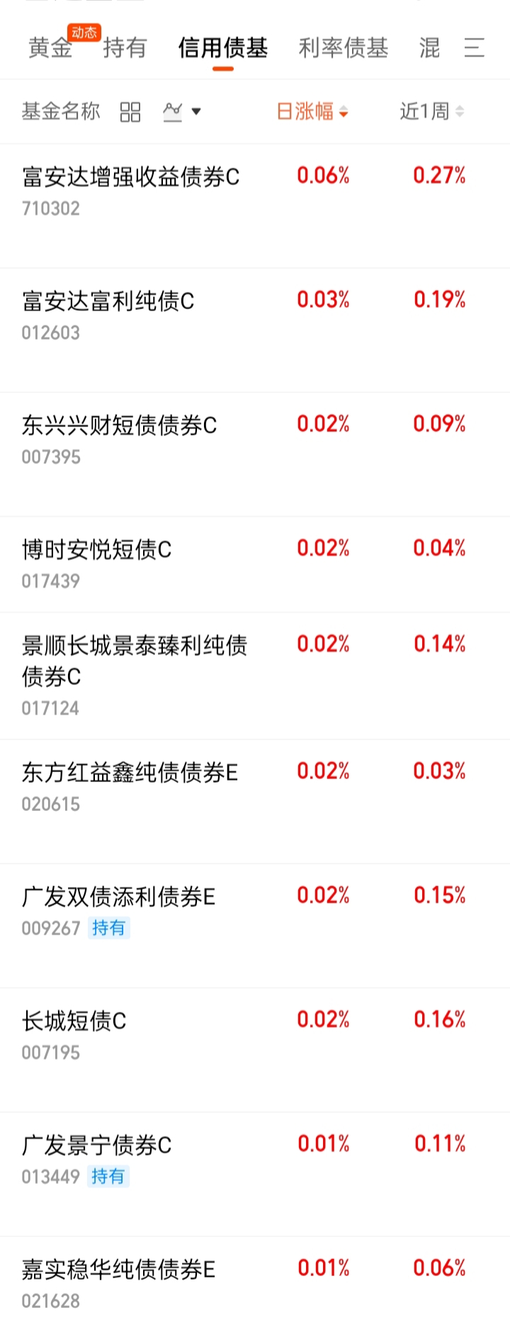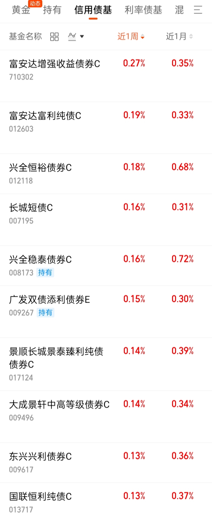 $华泰保兴安悦债券C(OTCFUND|020741)$。$东方添益债券(OTCFUND|400030)$。$华泰保兴安悦债券A(OTCFUND|007540)$ 。$鹏华丰禄债券(OTCFUND|003547)$。$方正富邦鸿远债券C(OTCFUND|015909)$。$永赢稳健增强债券C(OTCFUND|014089)$。$国泰惠丰纯债债券A(OTCFUND|007214)$。$博时恒乐债券C(OTCFUND|014847)$。$易方达增强回报债券A(OTCFUND|110017)$。$南方中债7-10年国开行债券指数E(OTCFUND|013594)$