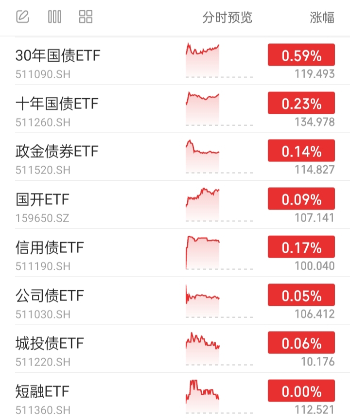 信用债ETF、公司债ETF、城投债ETF,代表信用债基。全部上涨