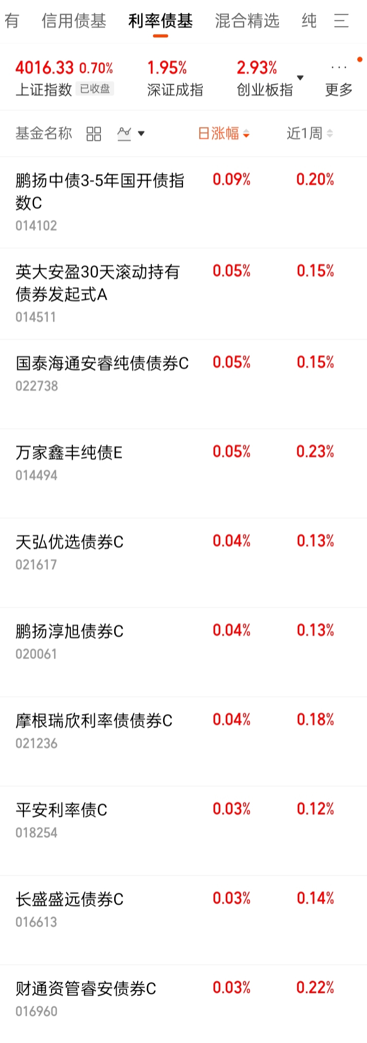3、利率债基日涨幅排名