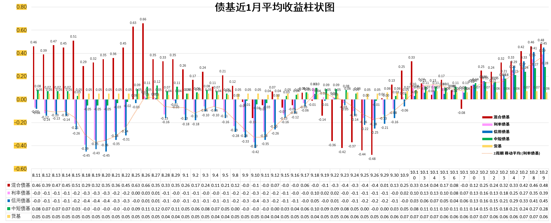 利率债基:0.39%。高于货基。