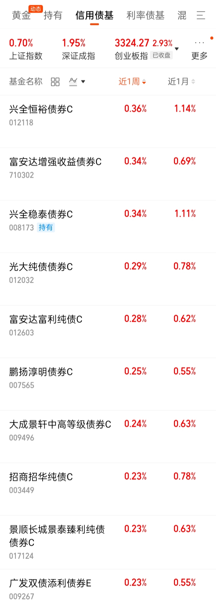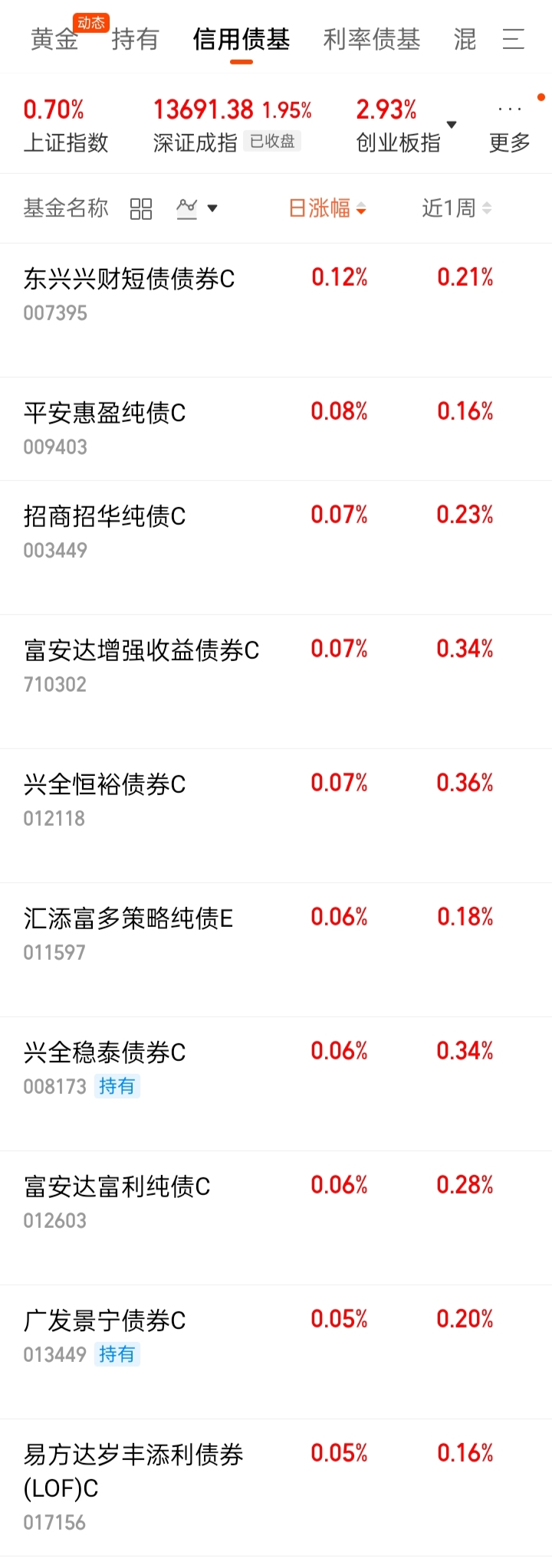 2、信用债基近1周涨幅排名