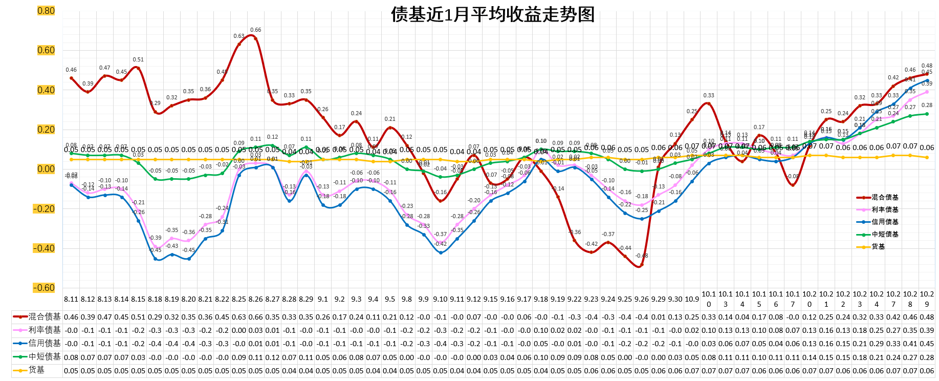 中短债基:0.28%。高于货基。