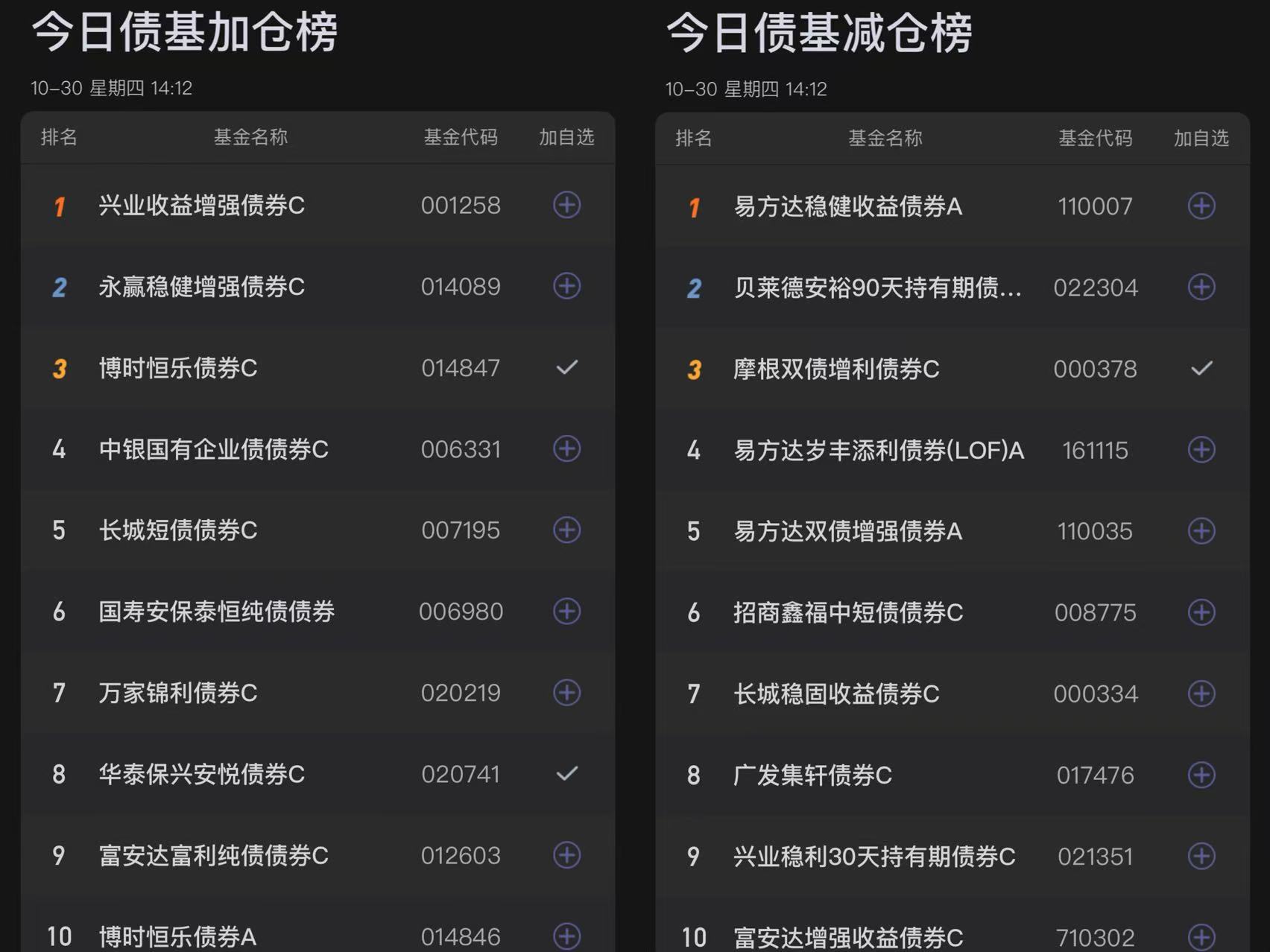 $华泰保兴安悦债券C(OTCFUND|020741)$$中欧纯债债券(LOF)C(OTCFUND|166016)$$景顺长城稳健增益债券C(OTCFUND|016870)$$中邮纯债恒利债券C(OTCFUND|002277)$$鹏华双债加利债券C(OTCFUND|013149)$$光大增利收益债券A(OTCFUND|360008)$$南方中债7-10年国开行债券指数A(OTCFUND|006961)$$华泰保兴安悦债券A(OTCFUND|007540)$$易方达增强回报债券A(OTCFUND|110017)$$银华盛泓债券A(OTCFUND|020955)$#美联储再次降息!12月降息与否难料#