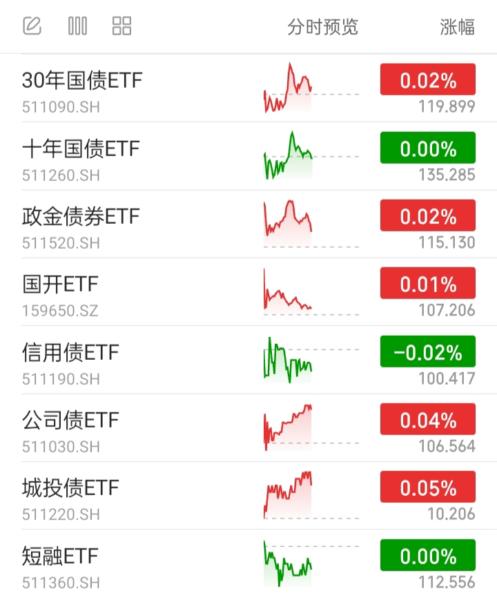 信用债ETF、公司债ETF、城投债ETF,代表信用债基。2涨1跌