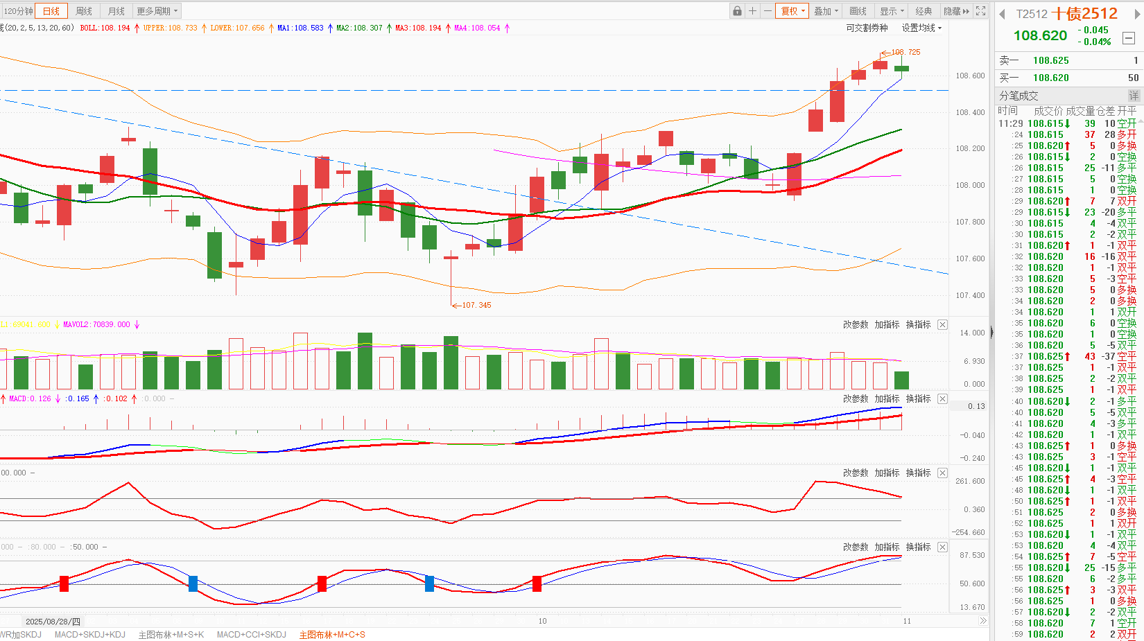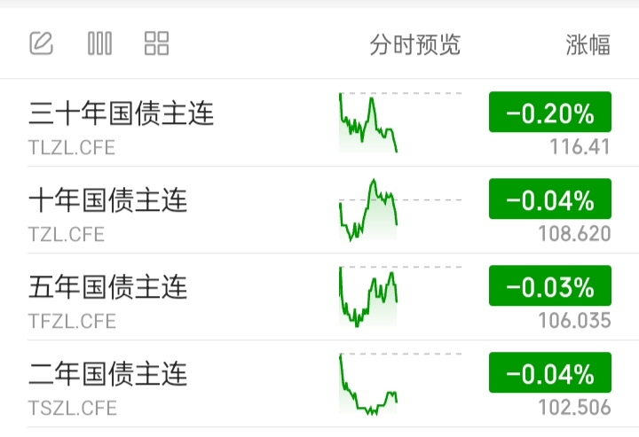 今天5、10、30年国债期货日K线收盘后在5日均线之上,2年国债期货日K线收盘后在5日均线之下,整体走势较差。