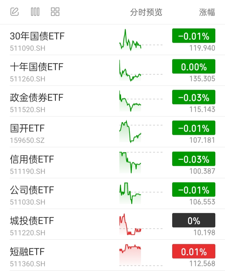 信用债ETF、公司债ETF、城投债ETF,代表信用债基。1平2跌