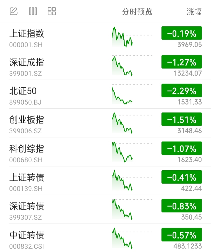 A股市场重要指数:全部下跌。今天偏股混基可能下跌。