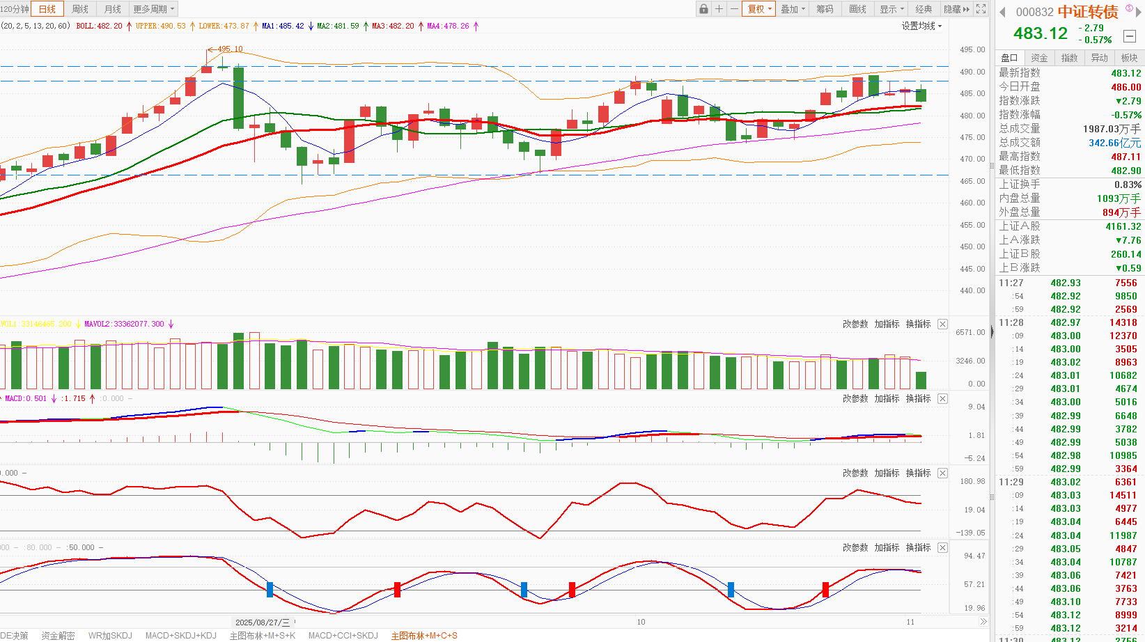 中证转债:跌0.57%,日K线在5日均线之下,KDJ死叉,MACD金叉红柱缩短。今天中证转债下跌,目前仍处于区间震荡,后市可能继续调整,考验10、20日均线和60日均线的支撑。