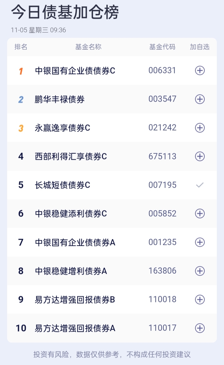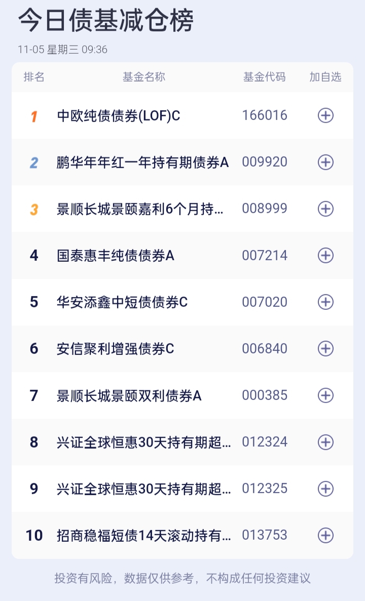 债基加减仓榜