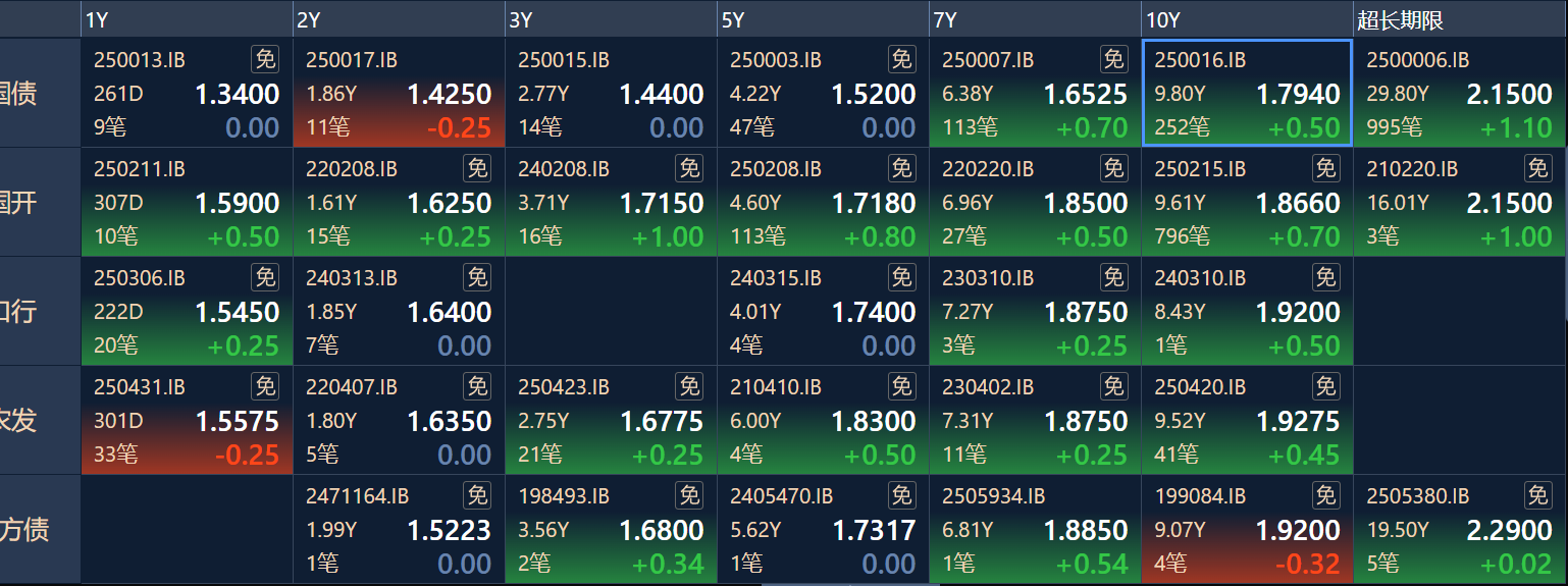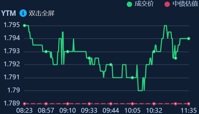 二、十年期国债收益率:1.794 0.005%(国债收益率越涨,债市越跌,两者反向关系)