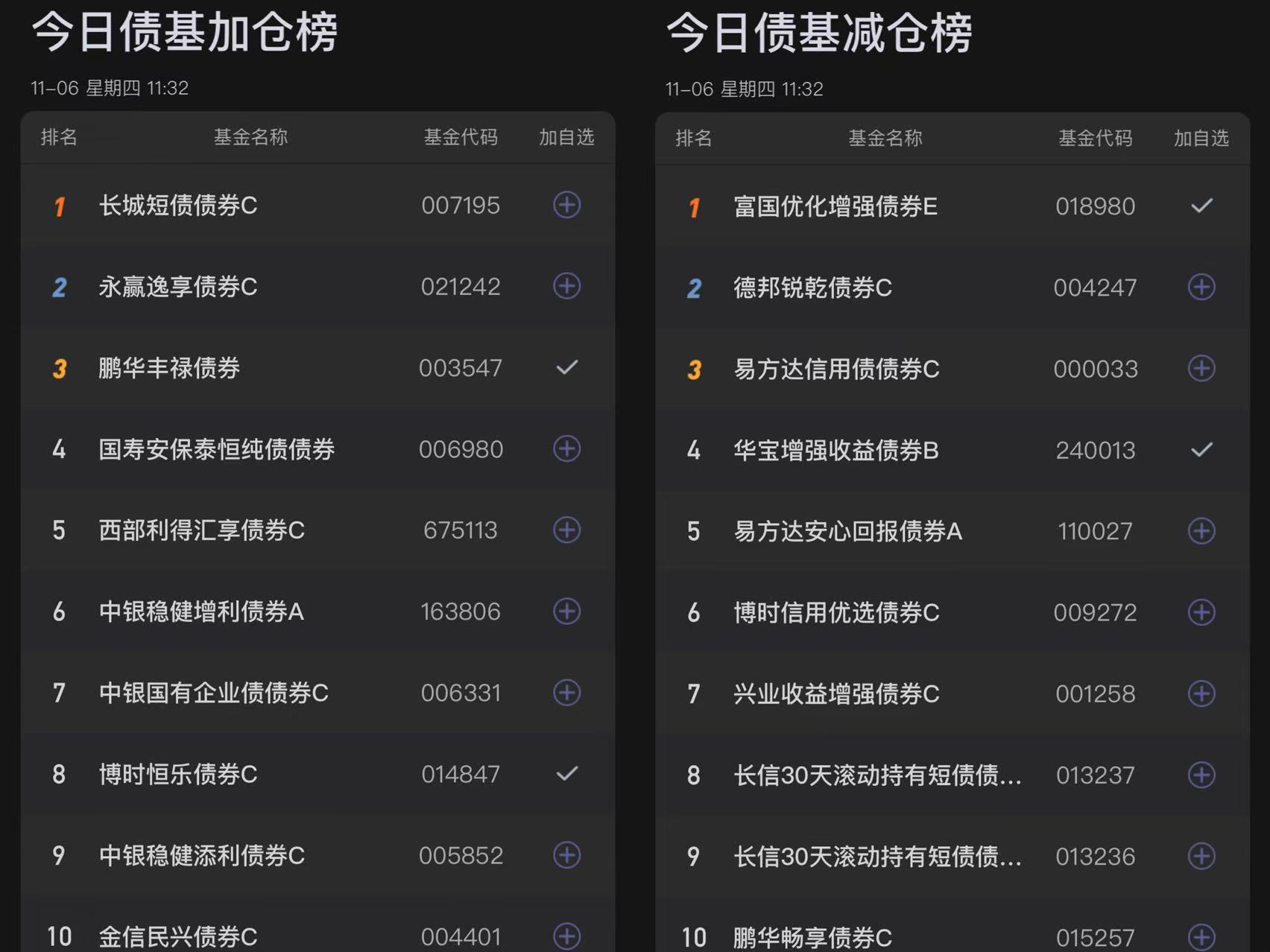 五、今日债基榜单: