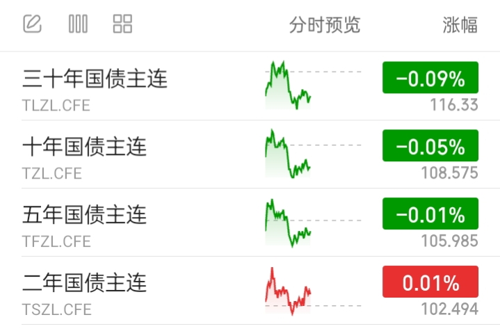 好在率先调整的2年国债期货今天日K线探低10日均线后上涨,有止跌企稳的迹象,后市密切观察。