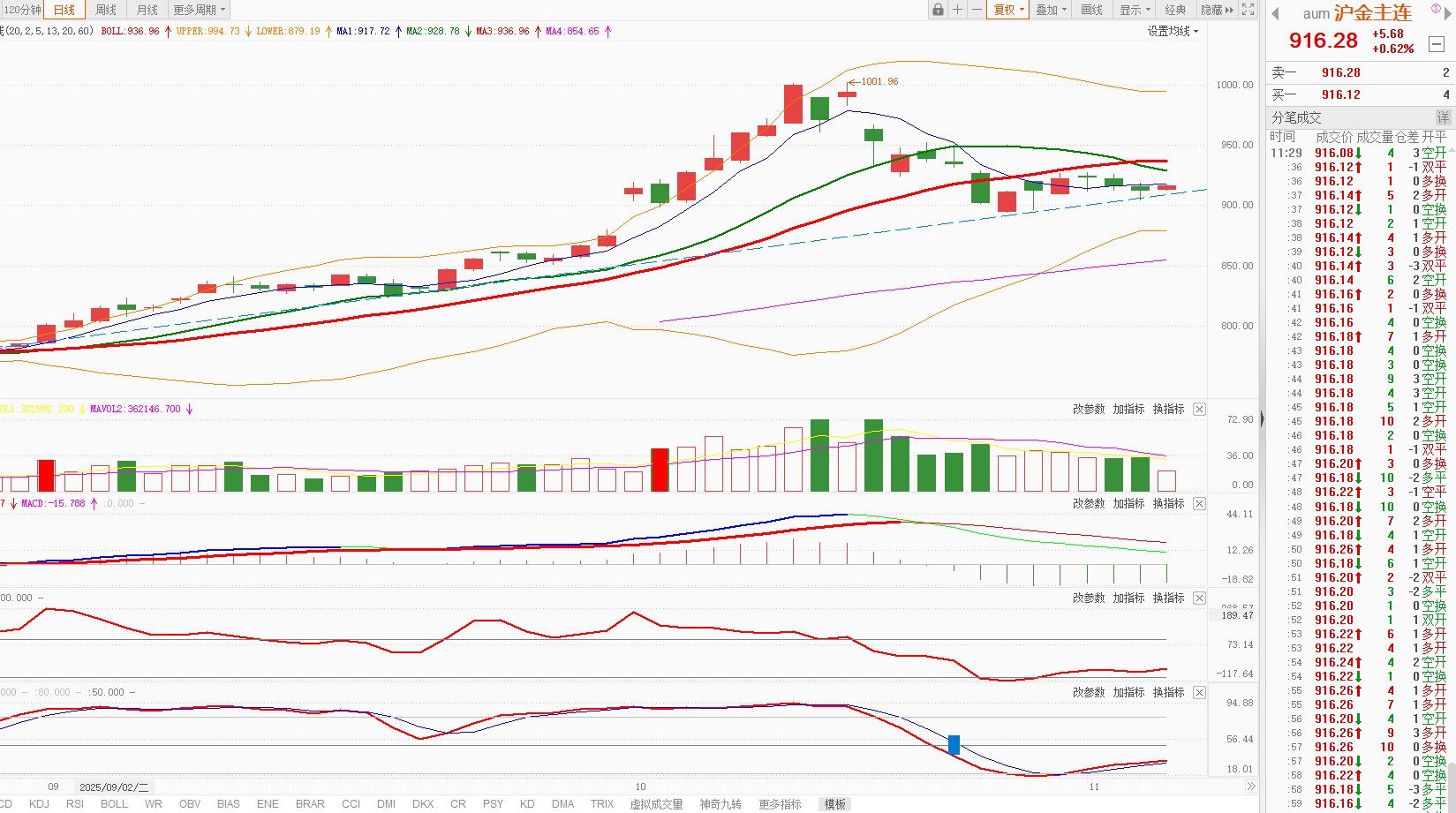 今天国债期货日K线收盘后全部在5日均线之下,整体走势偏弱。