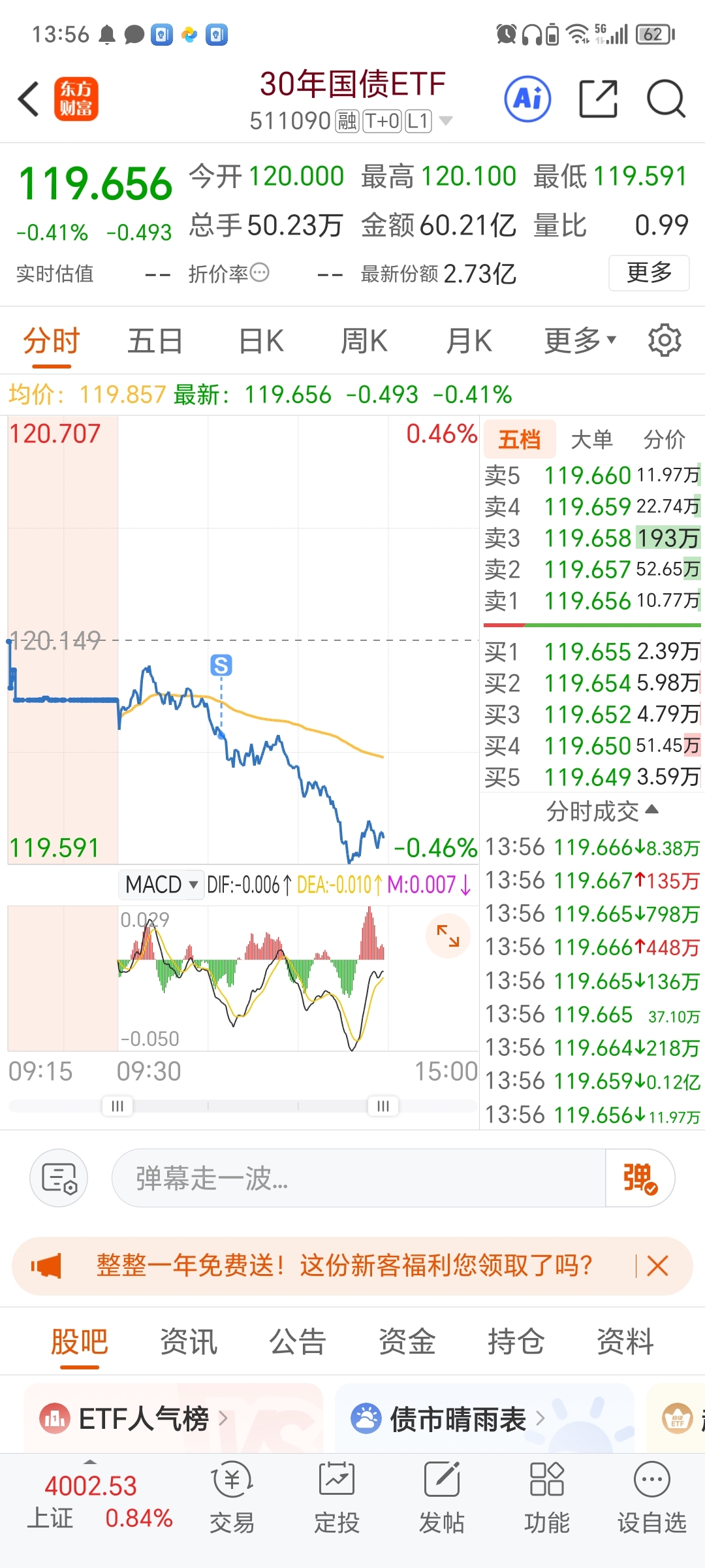 $30年国债ETF(SH511090)$ 本来才赚0.5,今天一天差点还回去,幸亏跑的快
