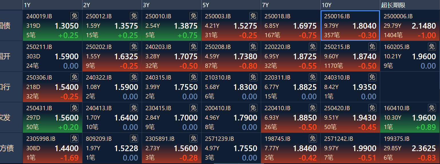 二、十年期国债收益率:1.804 -0.003%(国债收益率越涨,债市越跌,两者反向关系)