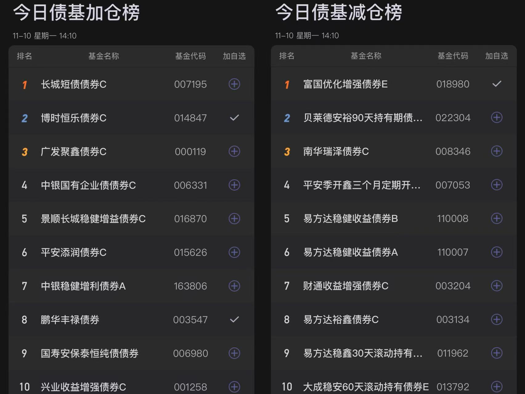 $鹏华丰禄债券(OTCFUND|003547)$ $易方达增强回报债券B(OTCFUND|110018)$ $易方达增强回报债券A(OTCFUND|110017)$ $博时恒乐债券C(OTCFUND|014847)$ $汇添富添添乐双盈债券A(OTCFUND|017592)$ $华泰保兴安悦债券C(OTCFUND|020741)$ $南方中债7-10年国开行债券指数A(OTCFUND|006961)$ $南方中债7-10年国开行债券指数A(OTCFUND|006961)$ $光大增利收益债券A(OTCFUND|360008)$ #大消费板块逆市拉升!行情能否持续?#
