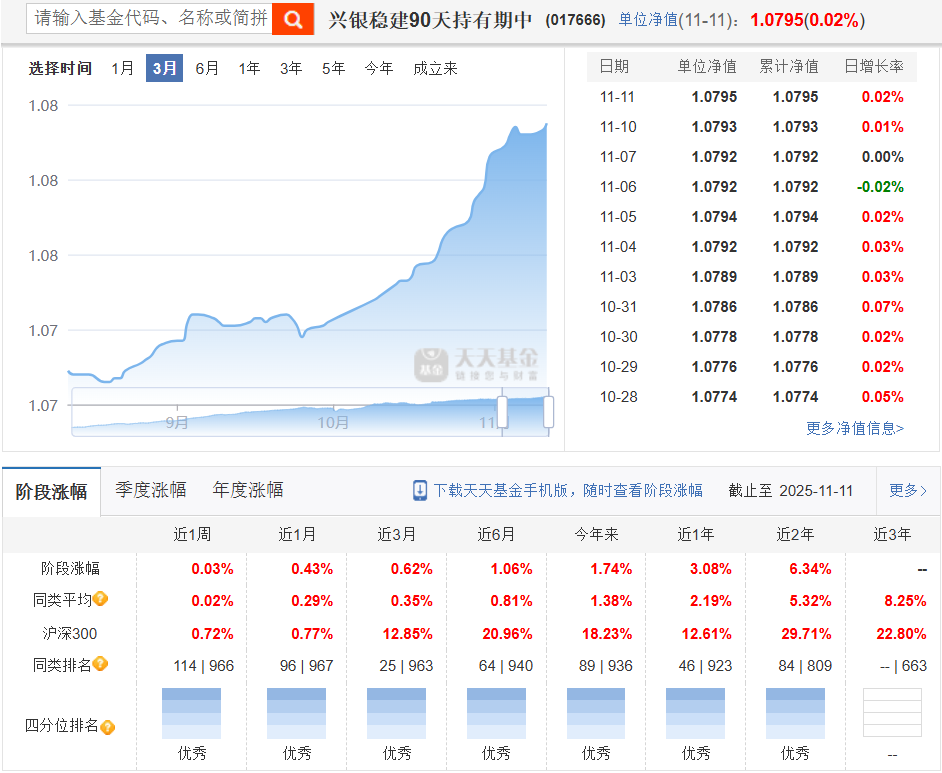 买入$兴银稳建90天持有期中短债C(OTCFUND|017666)$1万元。