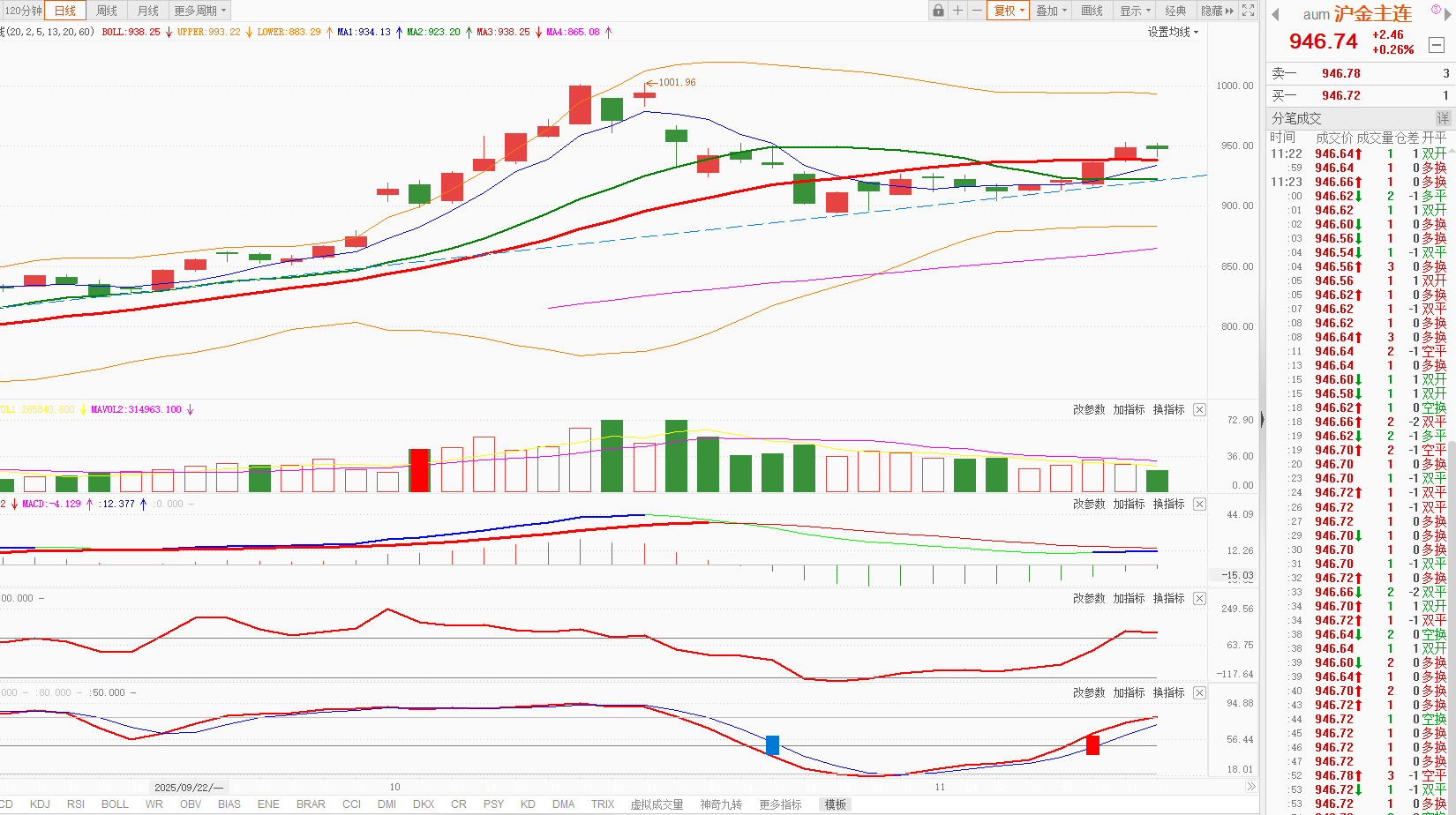 沪金主连:涨0.25%,日K线在5日均线之上。今天沪金小涨,日K线仍在5、20日均线之上,目前保持小幅反弹上升走势,后市有望继续震荡上行。可持基观望或逢低适量买入。