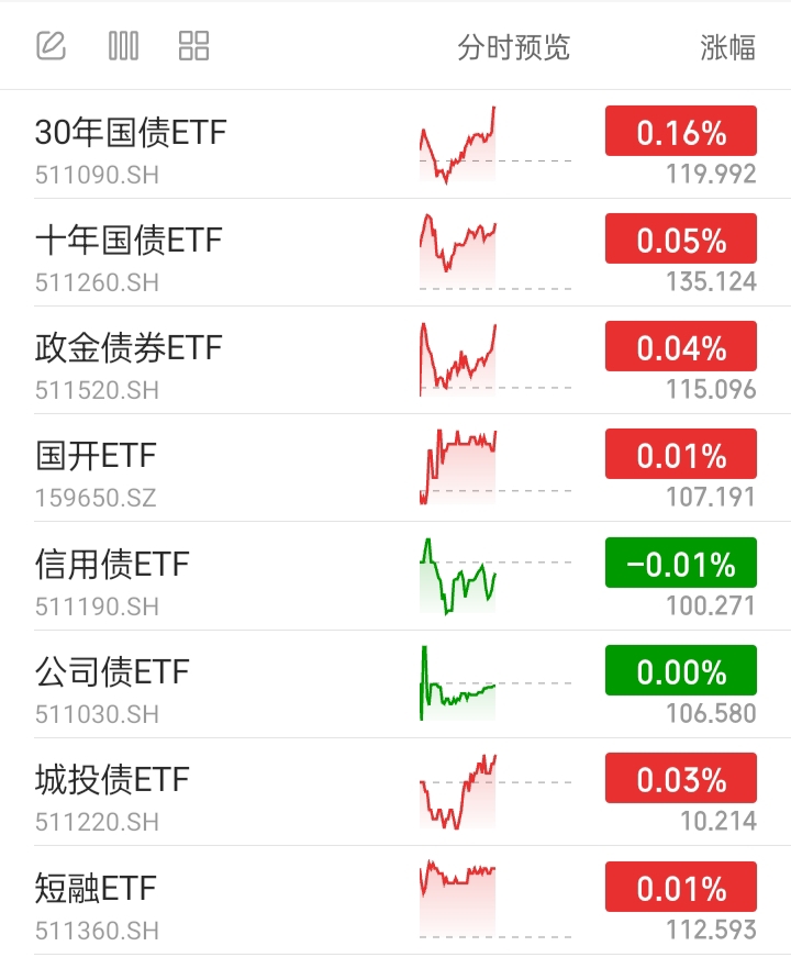 政金债券ETF,代表7-10年中长端政金债基。上涨