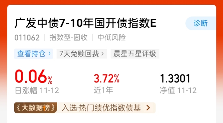 $广发中债7-10年国开债指数E(OTCFUND|011062)$