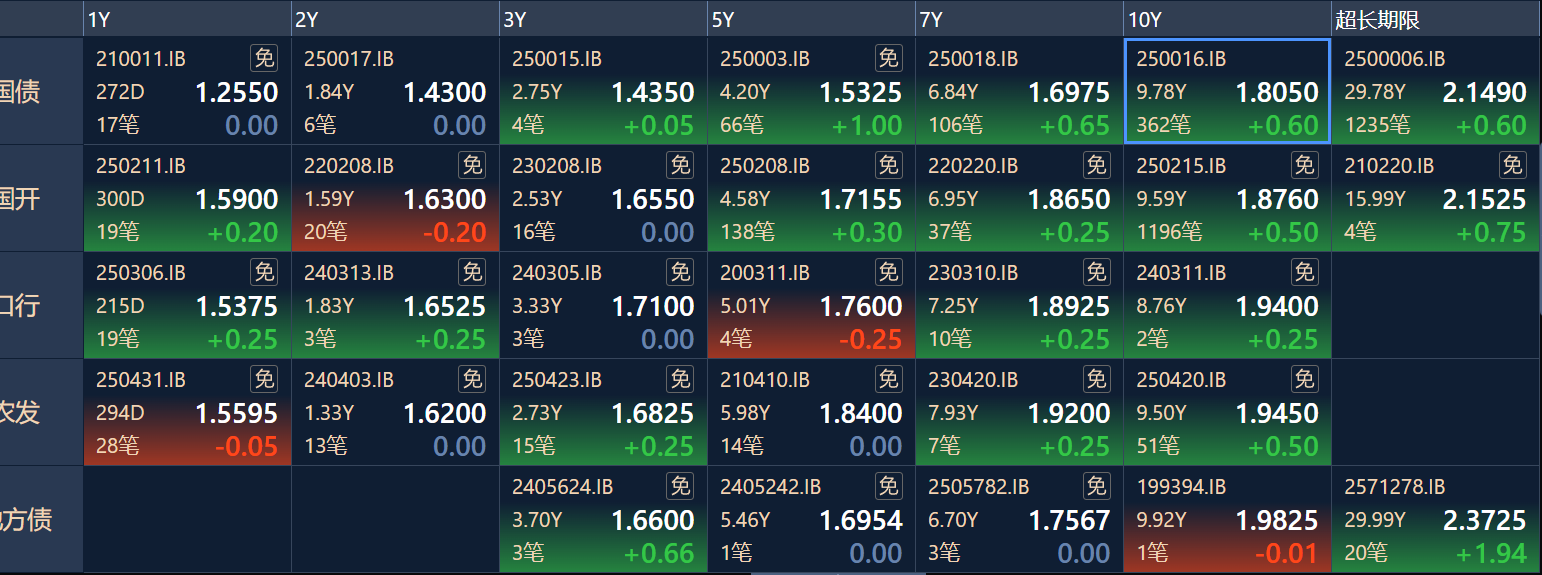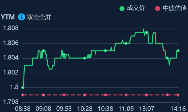 二、十年期国债收益率:1.805 0.006%(国债收益率越涨,债市越跌,两者反向关系)
