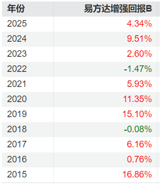 (1)$易方达增强回报债券B(OTCFUND|110018)$ 一直霸榜热搜的一只混债基金,成立近20年的老牌固收+了,走势很稳定,不管牛熊市,抗风险能力一级棒,近一年的最大回撤仅1.03%,可以说超越大部分中长纯债类基金了,基金经理王晓晨从业14年之久,年回报5.52%,称之为金牛经理,灵活主动管理基金,历经多轮债市周期考研,对市场前瞻性很强,非常佩服。这只混债算是低波动偏稳健类型了,对于求稳及厌恶大波动的伙伴来说,是非常友好的。8+2的标准混债配比,主要采取债券为主、权益增强策略,72%信用债作为安全垫,仅7%的转债及14%的个股去增厚收益。从业绩来说,近6个月达3.75%,近2年达16.21%,成立18年以来高达282.18%,换算年化高达15.67%,长期业绩表现大幅跑赢沪深300。从权益持仓来说主要以红利概念股为主,覆盖了资金矿业、长江电力、毅力股份等,表现稳定同时能够长期分红,而从历史概率来看,不论是持有1年、2年还是3年的用户,盈利概率为99.99%,个人对于这只老牌基非常看好,准备持仓待涨。