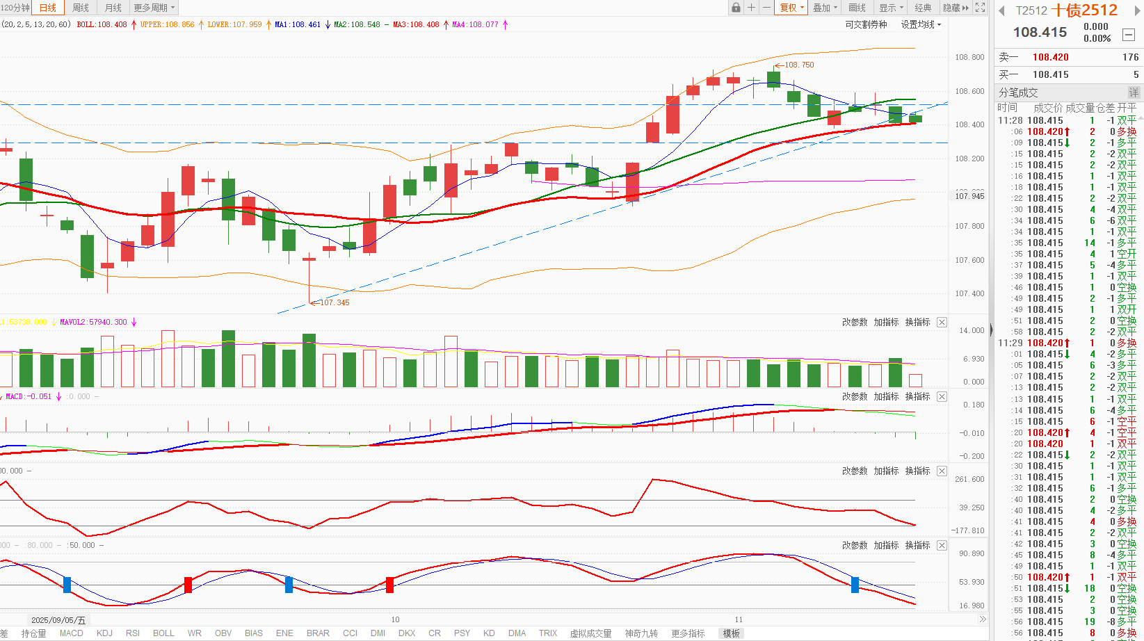 今天10年国债期货高开低走,收0.00%,日K线在5日均线之下。
