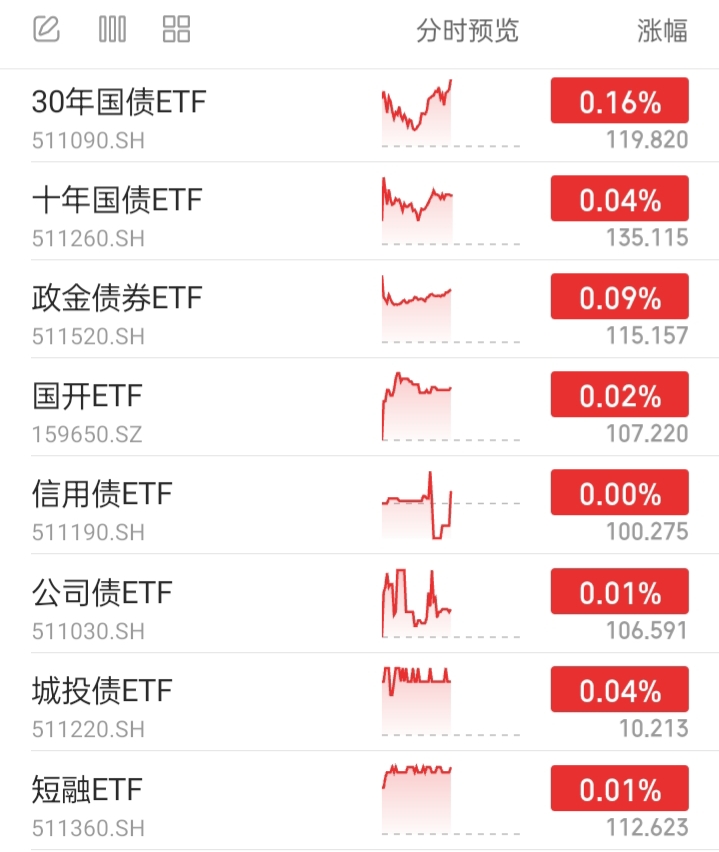 信用债ETF、公司债ETF、城投债ETF,代表信用债基。1平2涨