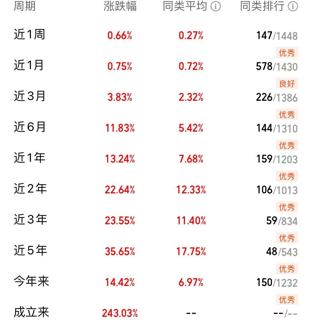 (2)补仓老牌混债——招商安本增利债券,成立19年,收益率高达243.03%,换算年化收益率在12.79%。