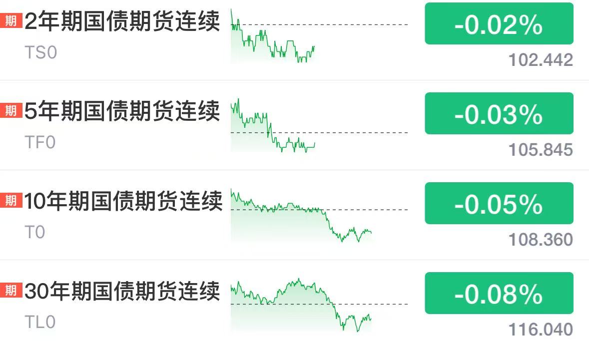 一、国债期货:-0.046%(反映市场对未来债市预期,国债期货越涨,债市越涨,两者正向关系)