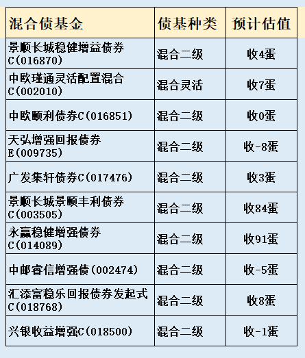 五、今日债基实时收蛋预估(行情时刻变化,具体收蛋以实际为准)