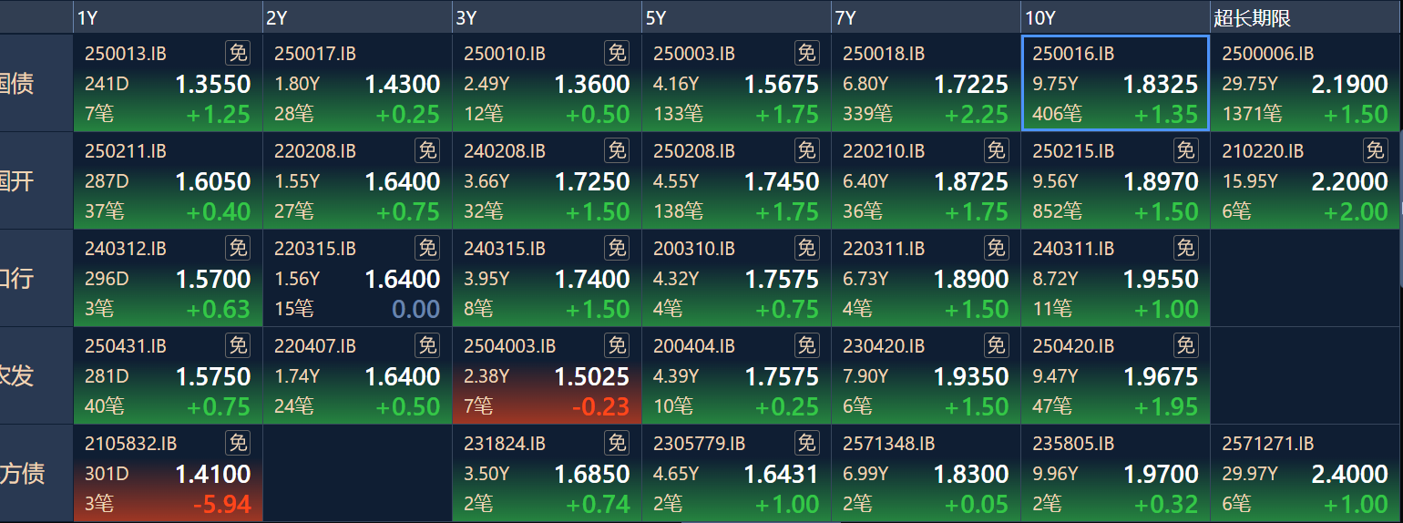 二、十年期国债收益率:1.8325 0.0135%(国债收益率越涨,债市越跌,两者反向关系)