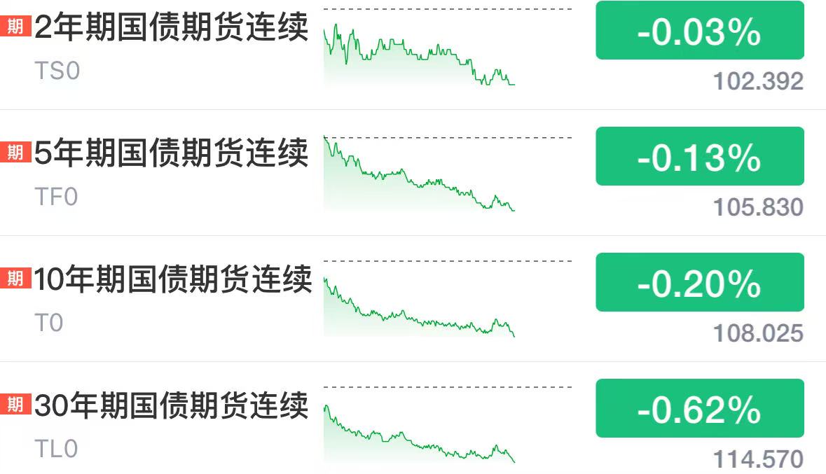 一、国债期货:-0.203%(反映市场对未来债市预期,国债期货越涨,债市越涨,两者正向关系)