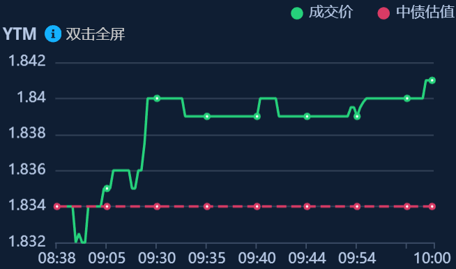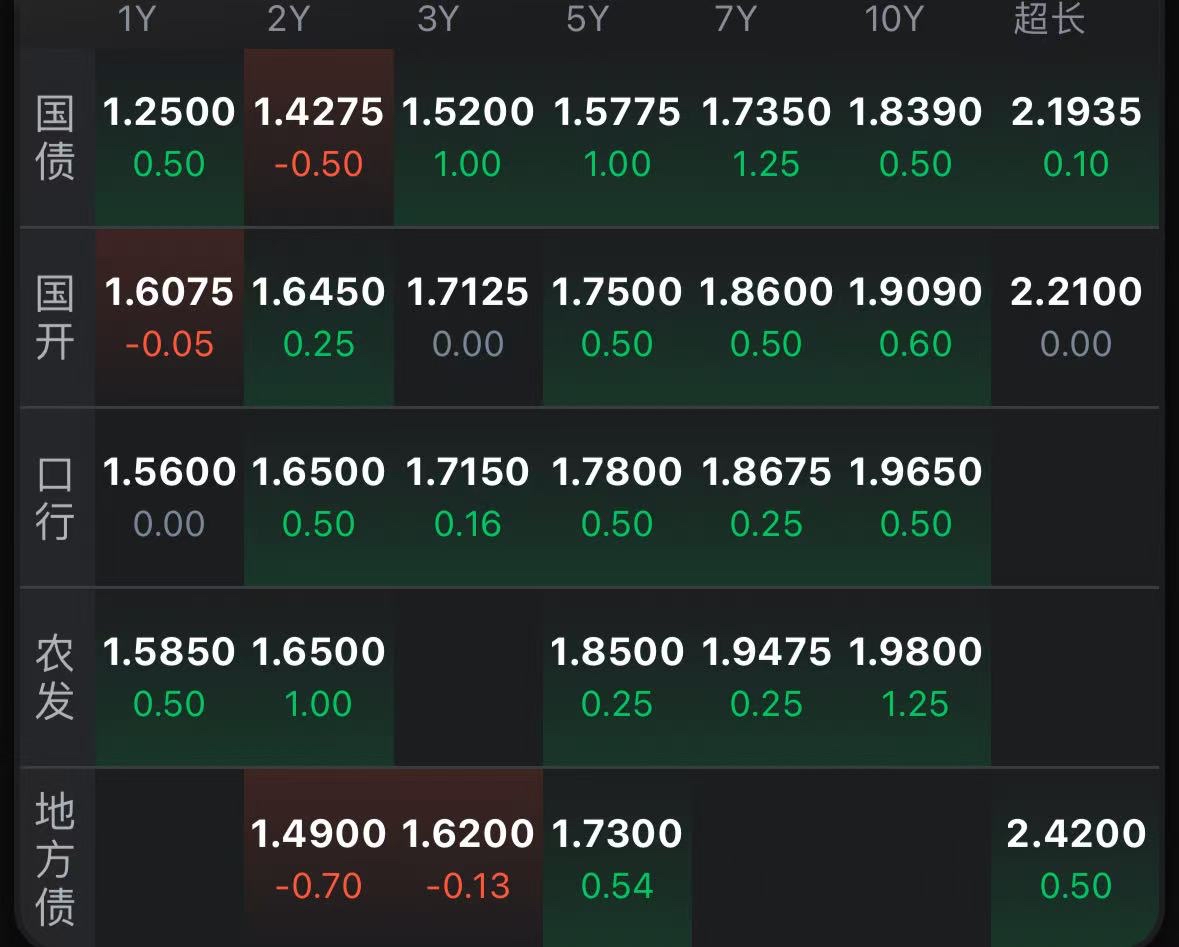 二、十年期国债收益率:1.841 0.007%(国债收益率越涨,债市越跌,两者反向关系)