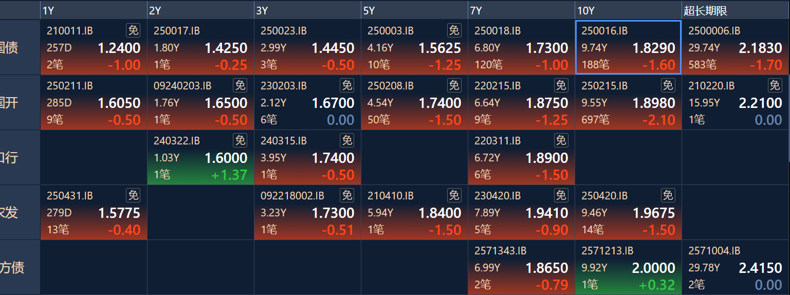 二、十年期国债收益率:1.829 -0.016%(国债收益率越涨,债市越跌,两者反向关系)
