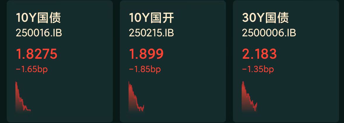 十年期国债收益率:1.8275%,-1.65BP(国债收益率越跌,债市越涨)