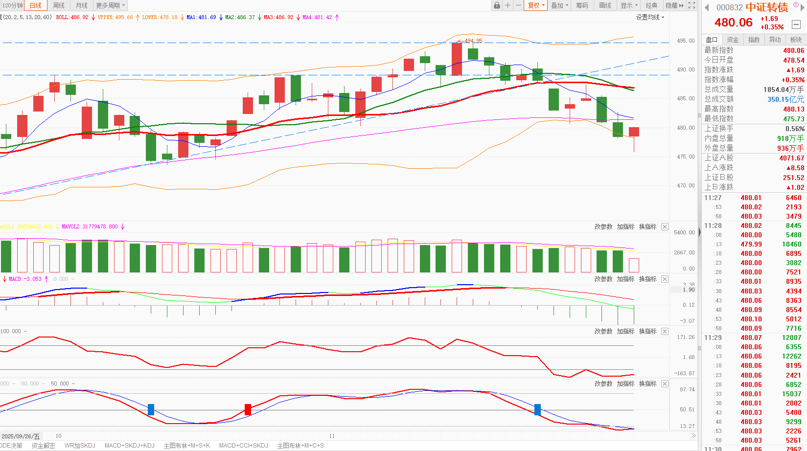 市场资金价格下跌,相比上个交易日便宜,对债市有利。早盘股市主要指数全部上涨,对债市有一定压制作用,股起债落,跷跷板效应。