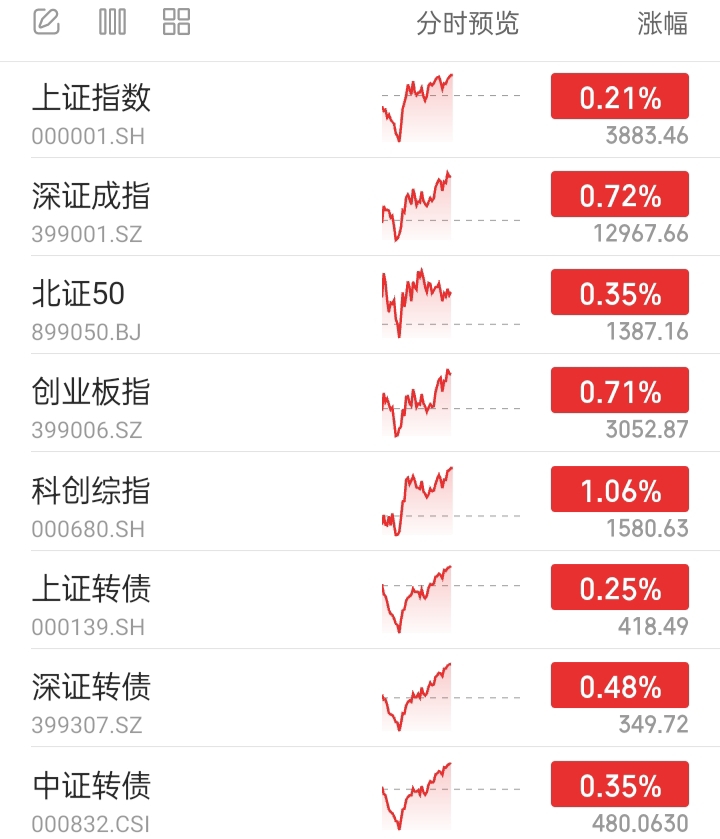 可转债主要指数:全部上涨。今天偏可转债混基可能上涨。