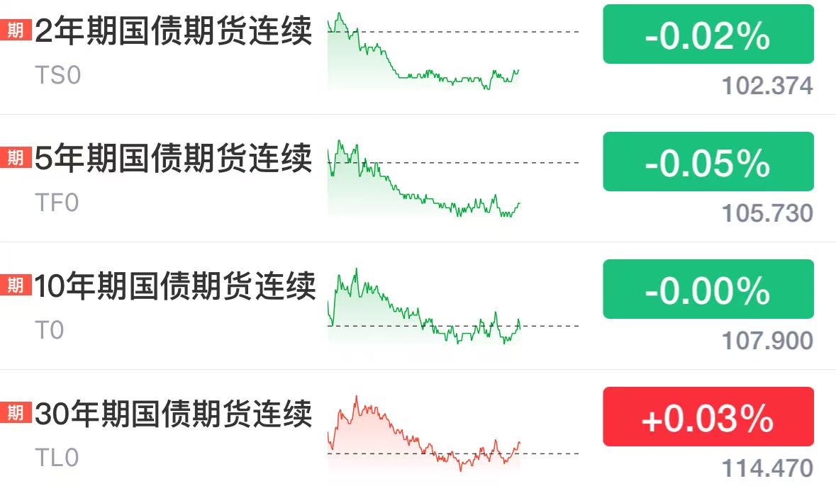 一、国债期货:-0.005%(反映市场对未来债市预期,国债期货越涨,债市越涨,两者正向关系)