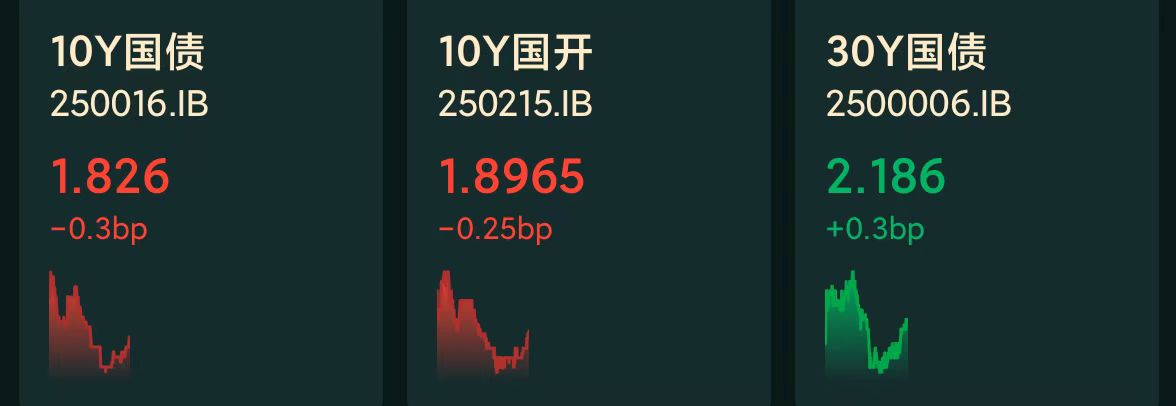 十年期国债收益率:1.826%,-0.3BP(国债收益率越跌,债市越涨)